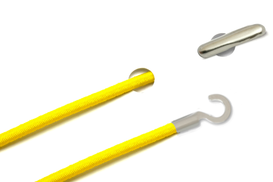 Cordoncini in gomma con copiglia e capocorda aperto, giallo