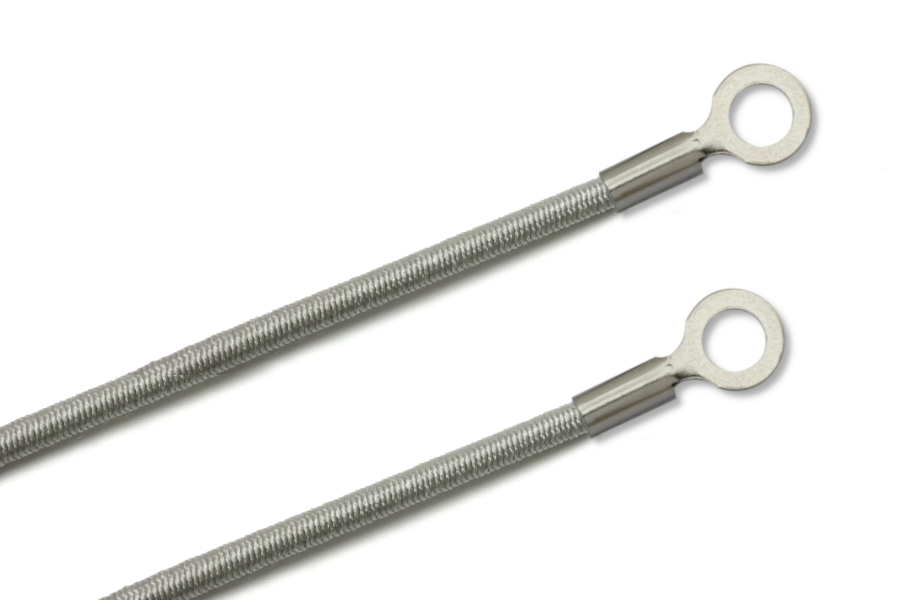 Beschreibung: Gummischnüre, 2,2 mm Durchmesser, grau   mit 2 Kabelschuhen,... altro