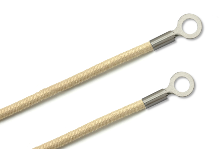 Beschreibung: Gummischnüre, 2,2 mm Durchmesser, beige   mit 2 Kabelschuhen,... altro