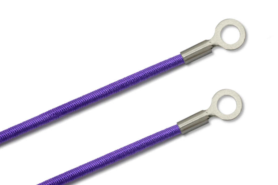 Beschreibung: Gummischnüre, 2,2 mm Durchmesser, lila   mit 2 Kabelschuhen,... altro