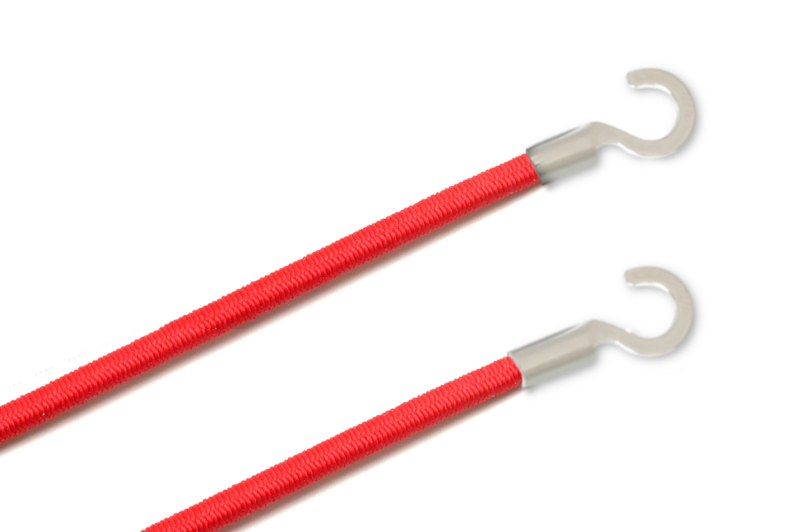 Gummischnüre mit Kabelschuhen, offen, rot