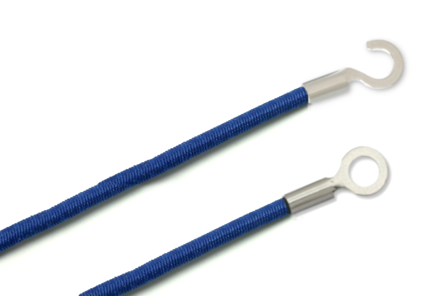 Gummischnüre mit Kabelschuhen, geschlossen und offen, blau