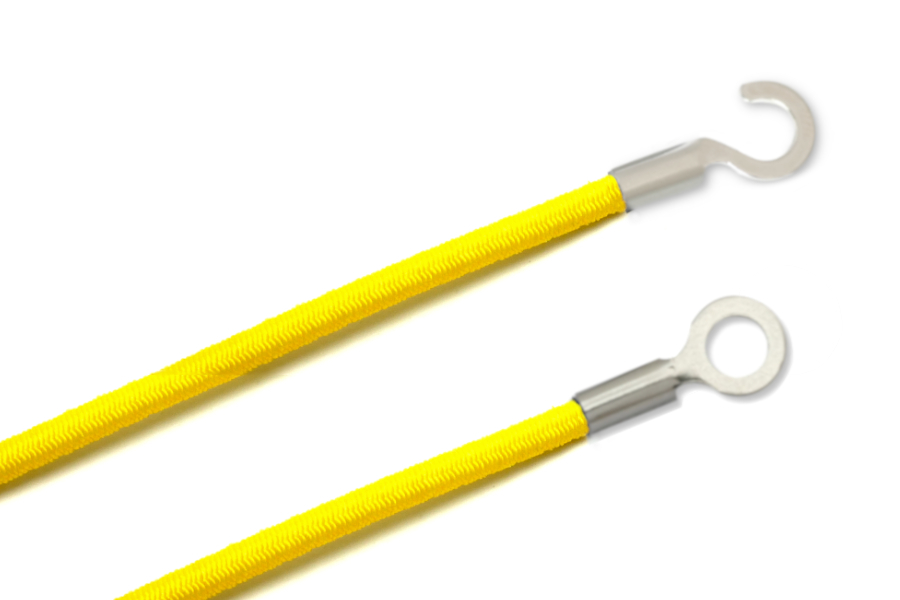 Gummischnüre mit Kabelschuhen, geschlossen und offen, gelb