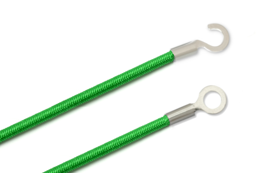 Gummischnüre mit Kabelschuhen, geschlossen und offen, grün