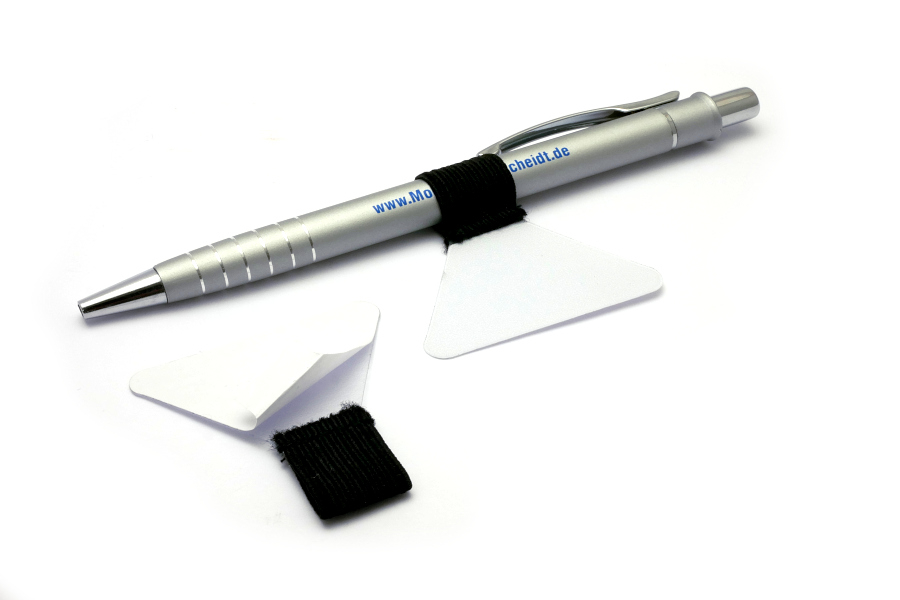 Stifthalter, transparent, selbstklebend, Gummischlaufe schwarz